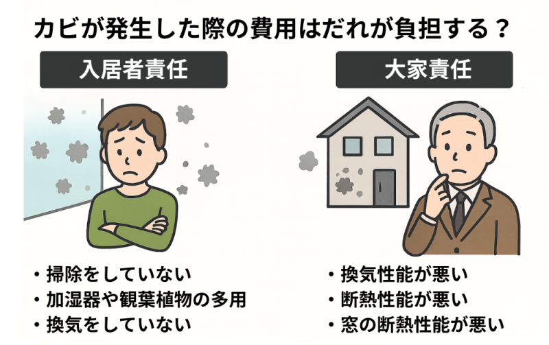 - カビが発生した際の費用は根本原因をつくった人が負担することになります。